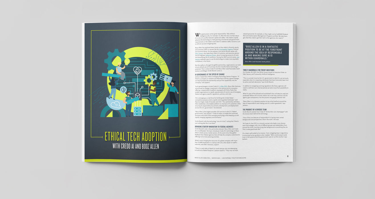 My work on print design at Booz Allen Hamilton focused on developing clear, cohesive internal communications that balanced thoughtful messaging with refined, brand-aligned visual execution. The objective was to support internal initiatives through print materials that felt intentional, inclusive, and consistent with the firm’s established brand standards. I contributed to a range of internal print pieces, including the firm’s DEI magazine and physical materials for internal events, ensuring each asset was designed with audience context, readability, and longevity in mind.