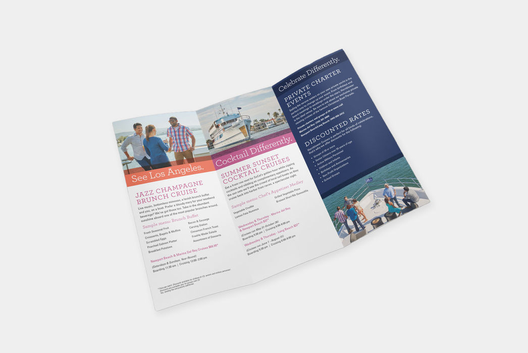 This approach allowed the brand to maintain consistency while speaking appropriately to diverse audiences and occasions. By tailoring design systems to each cruise category, the print work supported increased awareness, engagement, and interest across Hornblower’s sightseeing, dining, and seasonal cruise offerings.