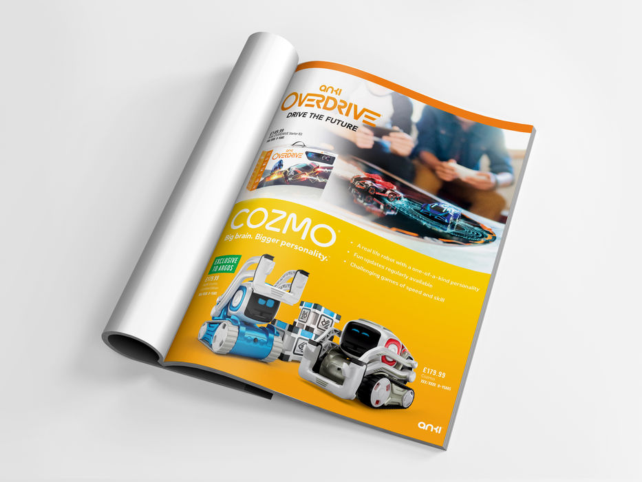 My print work at Anki focused on creating cohesive, brand-driven materials that supported product marketing across retail and consumer touchpoints. The objective was to translate Anki’s playful yet sophisticated product vision into clear, compelling print assets that communicated value, functionality, and innovation. I designed a range of materials including brochures, product advertisements, in-store signage, and packaging, ensuring consistency in visual language while adapting layouts to different retail environments and formats.